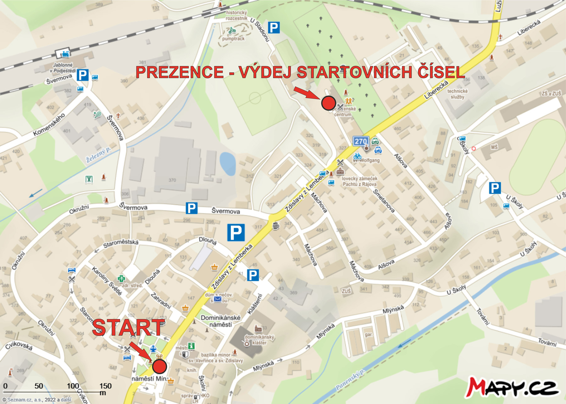 náměstí Míru Jablonné v Podještědí - startovní prostor a místa pro parkování Jablonné v Podještědí